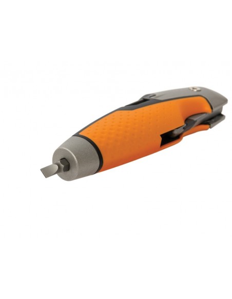 • FISKARS CarbonMax universalus dažytojo peilis apima daugelį papildomų įrankių, kuriuos dažnai naudoja dažytojai. Jame yra integruotas dažų skardinių atidarytuvas ir atsuktuvo antgalis, kad būtų galima atidaryti dažų skardines ir išsukti arba prisukti šviesos jungiklių plokštes. Peilis taip pat pasižymi tokia pačia nepriekaištinga apsaugos funkcija kaip ir užlenkiamas universalusis peilis, kai ašmenys atlenkiami ir užfiksuojami viena ranka, kad peilį būtų galima greitai naudoti ir saugiai laikyti. Sutvirtintas metalinis galas patogus naudoti uždarant skardines ar įkalant vinis. Peilyje sumontuota vidinė 3 ašmenų saugykla. Pridedami vieni CarbonMax universalūs ašmenys, kurie išlieka aštrūs iki 24 kartų ilgiau negu įprasti universalūs ašmenys.